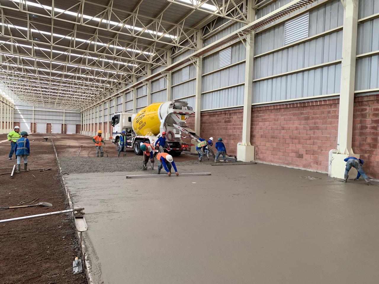 Nave industrial ubicada en Acatlán de Juárez, colado de 1052 mts cúbicos de módulo de ruptura de MR 45 para piso pulido.